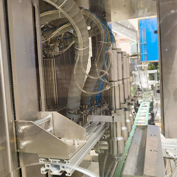 醬料灌裝機(jī)流水線屬于一整套高度集成的自動(dòng)化灌裝設(shè)備,其核心功能是將辣椒醬等粘度較高的商品按照設(shè)定的工序,一步一步完成灌裝任務(wù),直線式辣椒醬生產(chǎn)線主要集成了:輸送機(jī)、吹瓶機(jī)、灌裝機(jī)、上蓋機(jī)、壓蓋機(jī)、貼標(biāo)機(jī)、裝箱機(jī)等諸多設(shè)備。醬料灌裝機(jī)流水線以直線式設(shè)計(jì)結(jié)構(gòu),經(jīng)過(guò)規(guī)格參數(shù)的預(yù)設(shè),各工位可沿著輸送帶依次排列執(zhí)行運(yùn)動(dòng)。